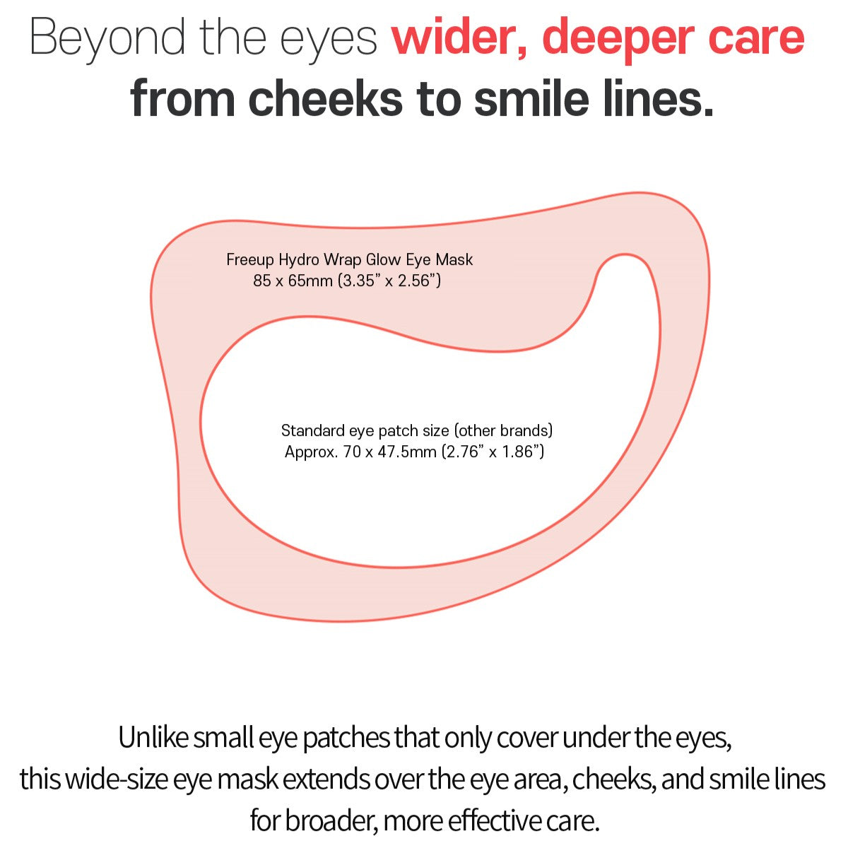 The 85 x 65 mm (3.35 x 2.56 in) BouncB-Freeup Hydro Wrap Glow Eye Mask provides wider coverage than other brands' eye masks.